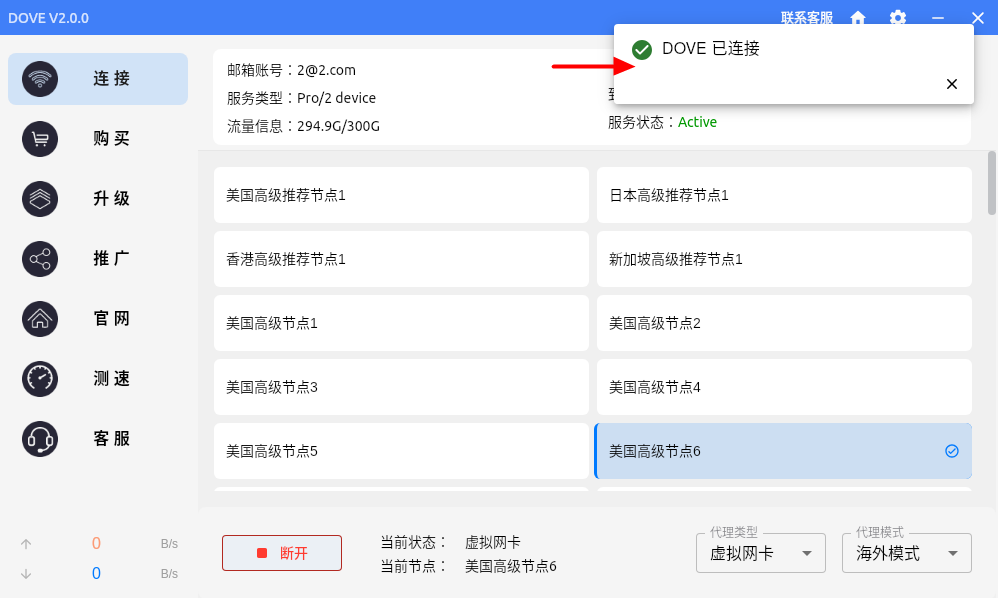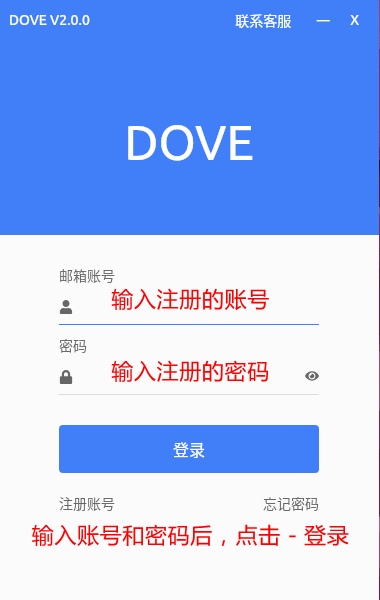 第6步:运行DOVE后,输入:您已购买服务的邮箱账号和密码,点击 - 登录(如图)